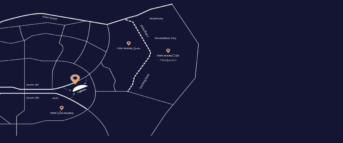 The prime location is one of the main choices the developer company is making to provide its clients with. And that’s what you will notice in Inplace New Cairo, as well as The Marq Communities, chose to lay the foundation of the mall in 90th Road, New Cairo, to be an easily accessible point for owners and visitors, since it is near many vital areas, and direct roads and axes.