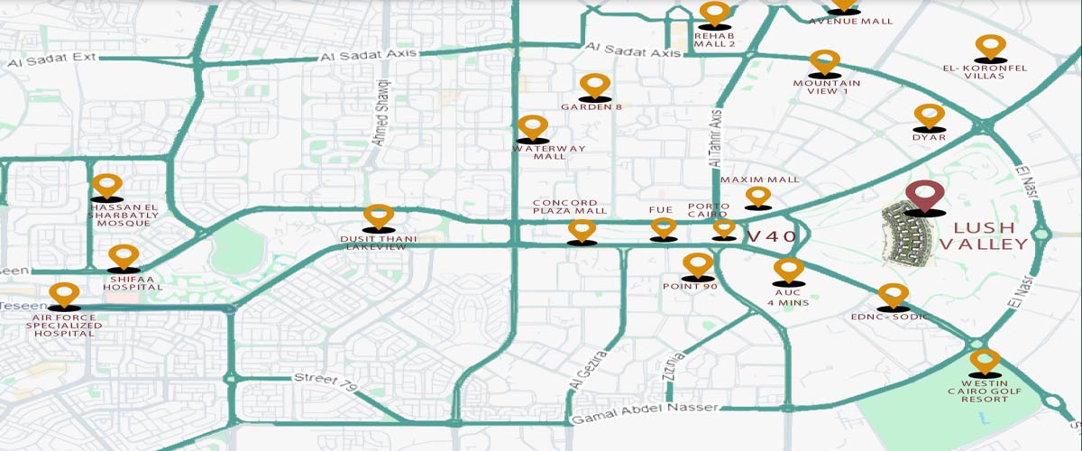 The Prime location is one of the main aspects that plays a major role in clients’ decisions, so City Edge Developments chose to lay the foundation of Lush Valley New Cairo Compound at teh heart of the 5th Settlement, to facilitate access for residents to get everywhere in a short time, also without waiting a long time in crowds. And what makes this location distinguished is the short distance from the project to many vital areas, roads, and hubs.