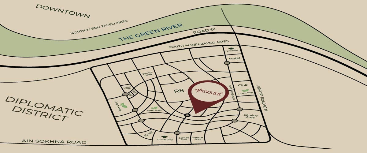 Empire State Developments chose to lay the foundation of Upmount Compound on one of the best locations in New Capital, “R8.” As well as the company knows well, it is a vital area where residents can reach many landmarks easily without the hassle of the the crowds and traffic jams. And what makes it more reachable is being near many vital roads and axes.